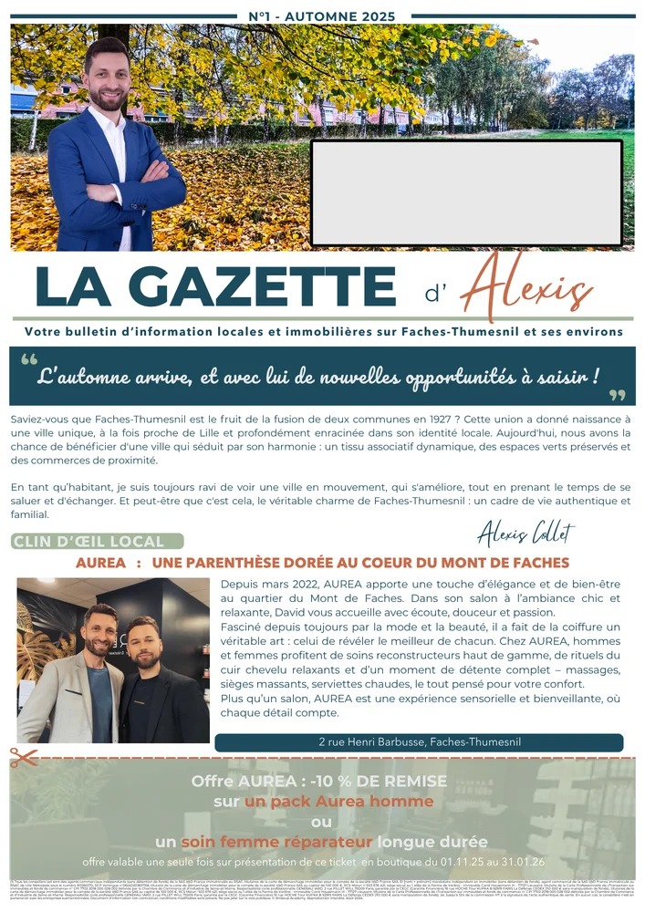 Alexis Collet, expert en estimation, achat et vente immobilière à Faches-Thumesnil, est ravi d'annoncer le lancement prochain d'une gazette dédiée aux résidents de Faches-Thumesnil, dans le quartier 5 Bonniers. Cette initiative vise à renforcer le lien entre les habitants et à partager des informations pertinentes sur la vie de quartier et les opportunités immobilières.